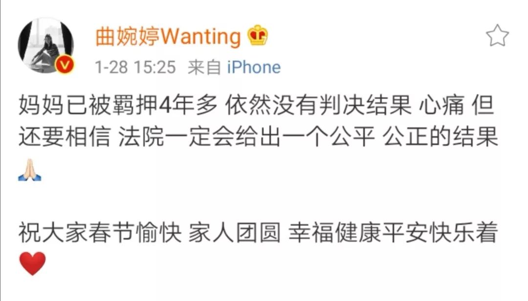 2016年的庭审中,曲婉婷没有出现在现场,但她每年都会在加拿大打开微博为母亲喊冤。