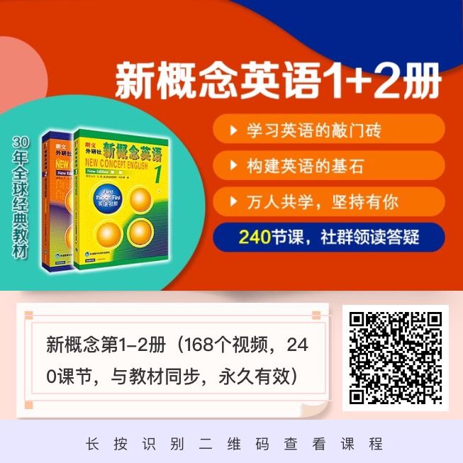 新概念1+2册视频课程,扫码可以直接试听,