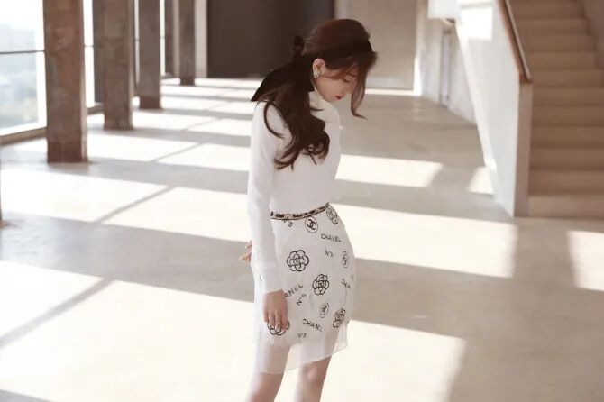 桂纶镁这套Chanel2020春夏系列,台媒犀利评价她穿了蚊帐出门,其实还蛮好看。