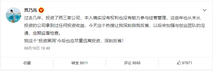 公司已补缴了税款,并为逃税一事给贾乃亮带来的影响道歉。