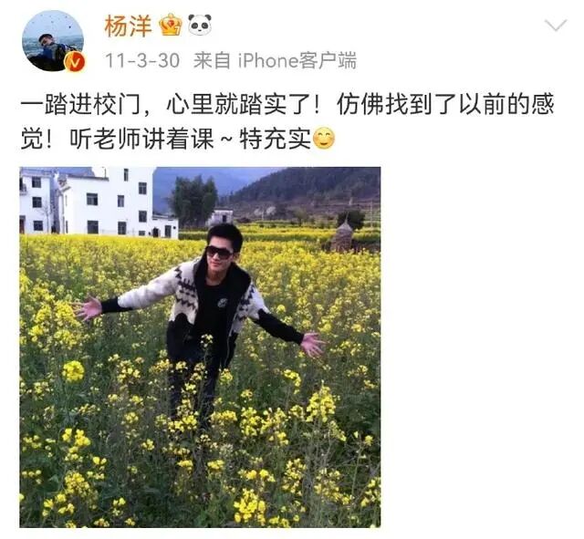2010年,19岁的杨洋去西湖旅游,连发了两条微博。