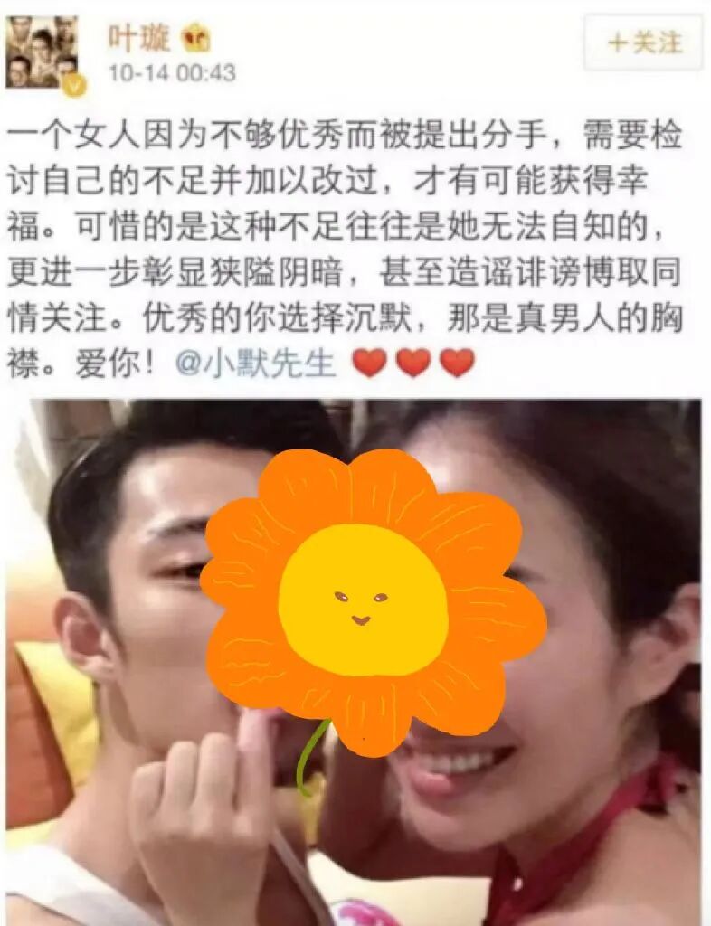 叶璇从此就像失了智一般,把微博当家,没完没了的秀恩爱。