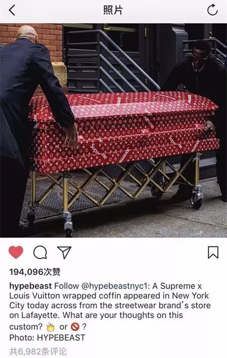奢侈品大户LV联合Supreme出了款棺材,长介样: