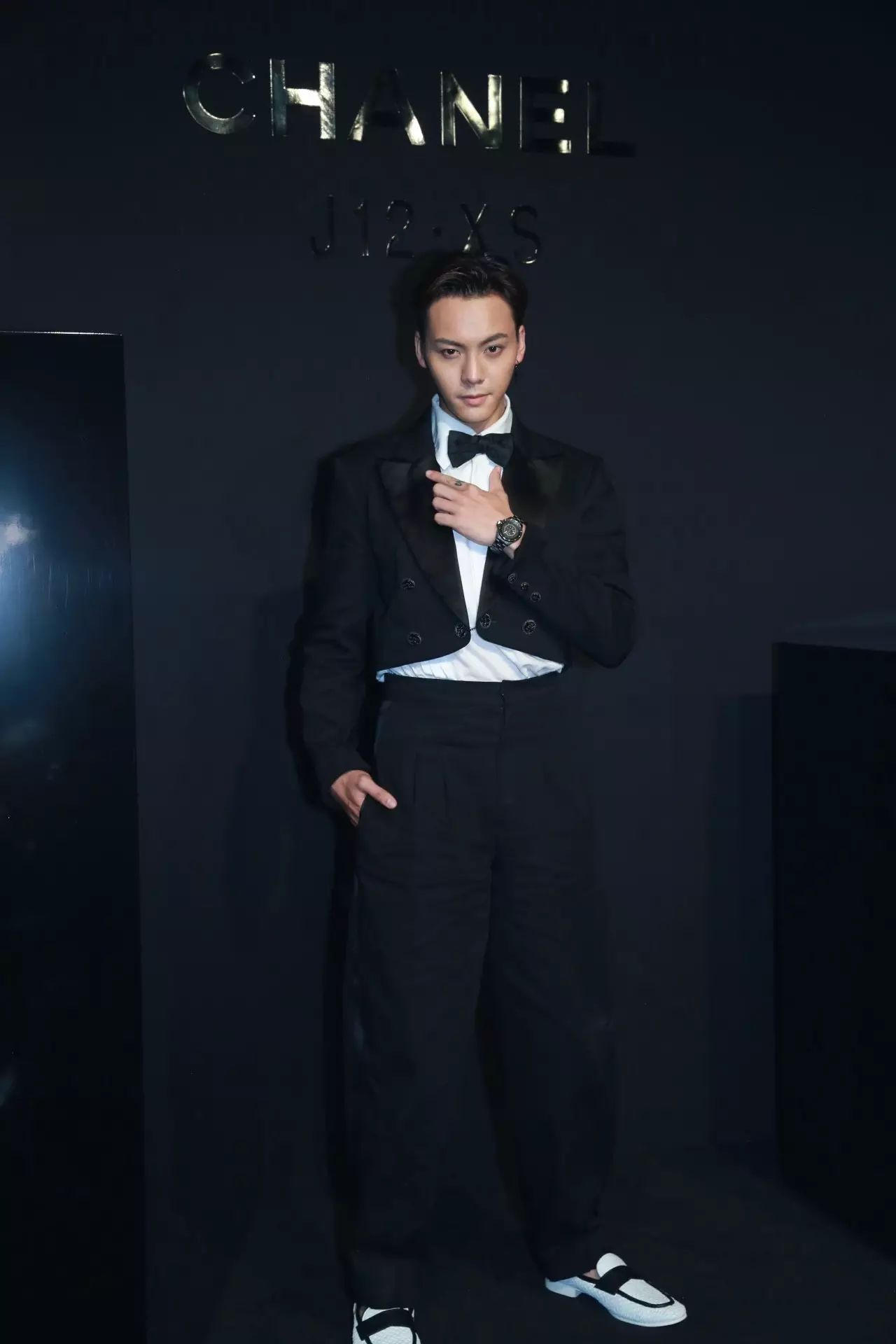 陈伟霆:黑色拼接毛衣内搭、白色印花衬衫、黑色西装外套 均为Prada;J12黑色腕表 Chanel