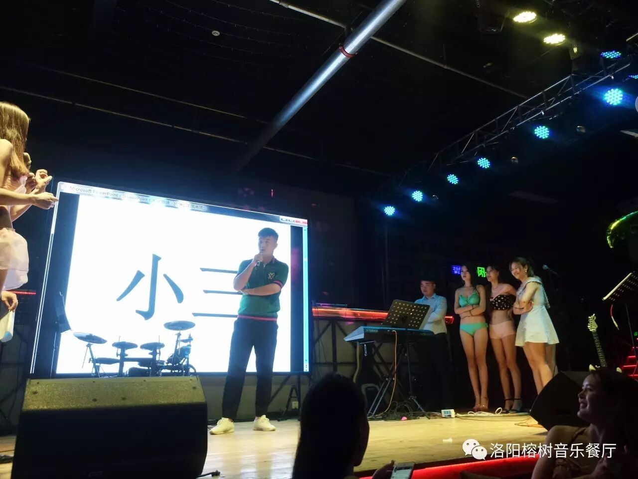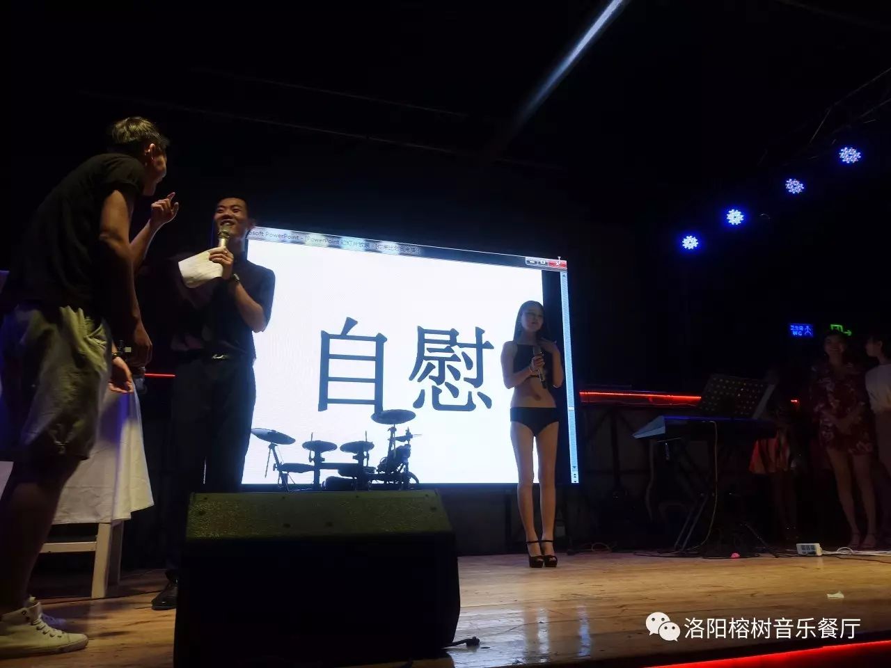 10点半,到了我们的游戏互动时间《你来比划我来猜》、这也是今晚的亮点之一、有机会可以与我们的美女Model近距离接触,我们灯光师小祎准备的词简直污到不忍直视、