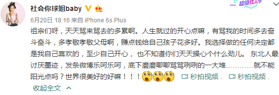 这网友哪受得了啊,可不得劲骂你!近日,“社会你球姐baby”更是贴出了一张网友发来的私信图,与网友发起正面撕逼战。
