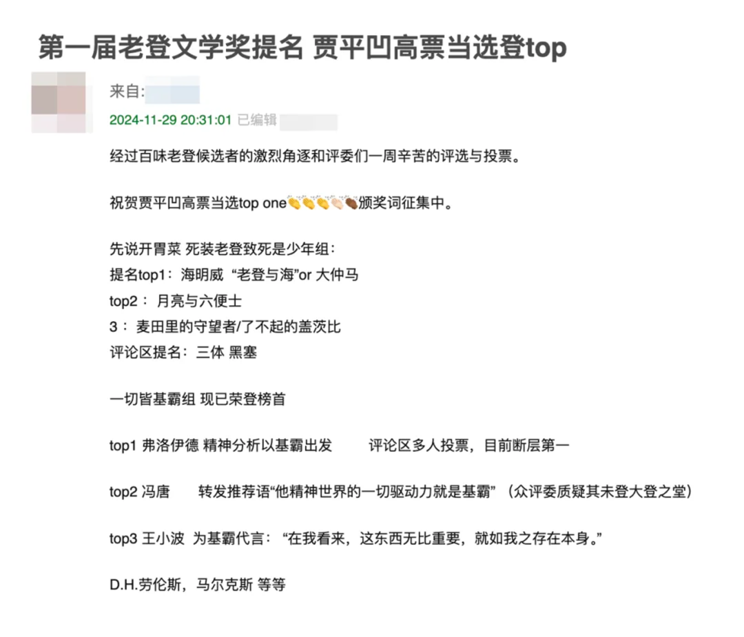 在豆瓣《第一届老登文学奖提名》的名帖里,反“老登文学”的理由居然是因为少年时期的读不懂和看不下去。