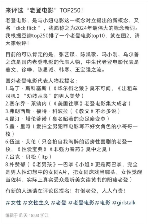 所以有人提出了“老登电影”作为对《好东西》“小妞电影”的回击。