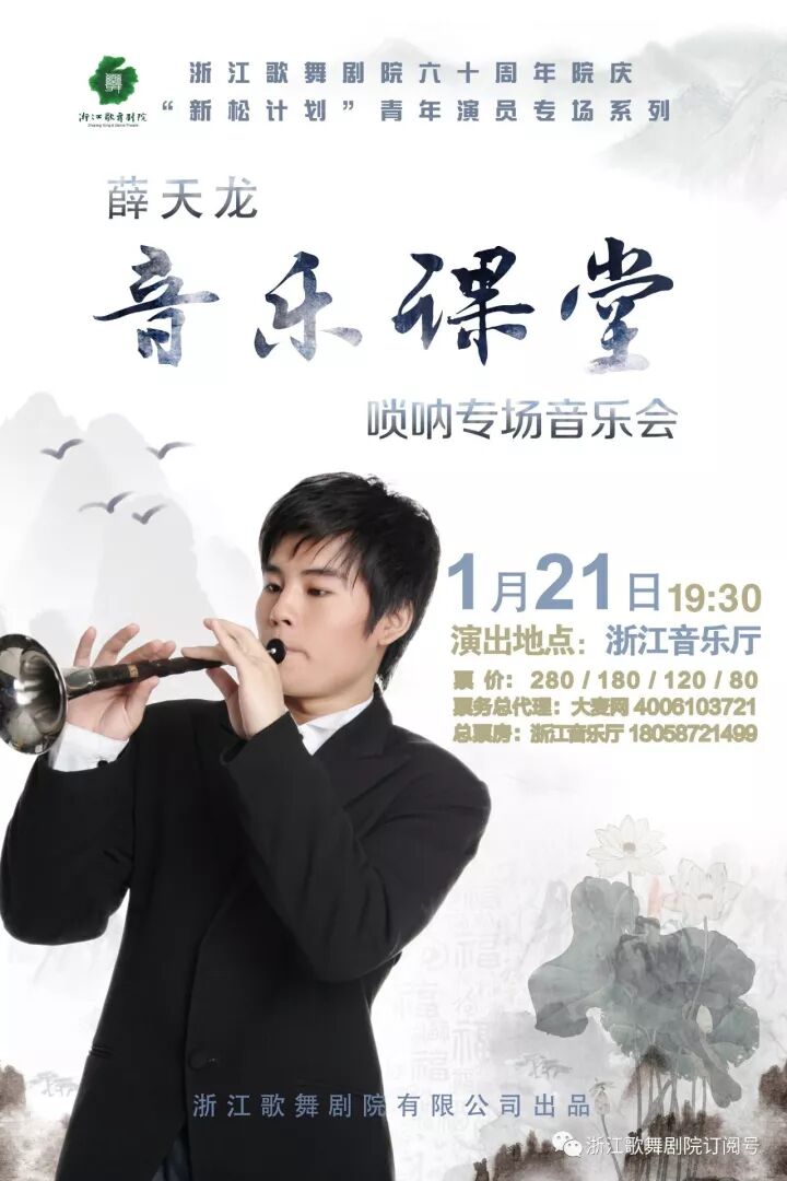 薛天龙 毕业于中国音乐学院本科及上海音乐学院研究生,浙江歌舞剧院首席唢呐演奏员;原中国华夏民族乐团唢呐声部声部长;自幼跟随国家一级演奏家冯永兴先生和著名作曲家隋利军先生学习;2007年以综合成绩第一名考入中国音乐学院国乐系,师从硕士生导师左继承教授,2011与中央音乐学院唢呐教授石海斌老师学习唢呐演奏艺术,参加工作后于2014年以优异的成绩考入上海音乐学院并师从刘英教授继续深造学习唢呐;曾重新录制著名作曲家施万春先生作曲并亲自监制的经典红色交响乐《节日序曲》《青松岭主题曲》的主奏唢呐部分;并在大学期间参与录制多部影视音乐;多次跟随华夏民族乐团在国家大剧院演出民族管弦乐专场并参加国内三十余个城市的巡回访问演出,参加工作两年内先后获得浙江省音乐舞蹈节民乐合奏金奖; 新松计划”未来演奏家独奏大赛银奖等。大学期间曾成功举办过两场薛天龙唢呐独奏音乐会;曾多次代表中国文化部,出访亚非欧等二十余个国家进行合奏或独奏的访问演出,受到了当地观众的热烈欢迎,并多次得到中央电视台、浙江卫视和当地电视台的媒体报道,受到国内业界的高度赞誉。