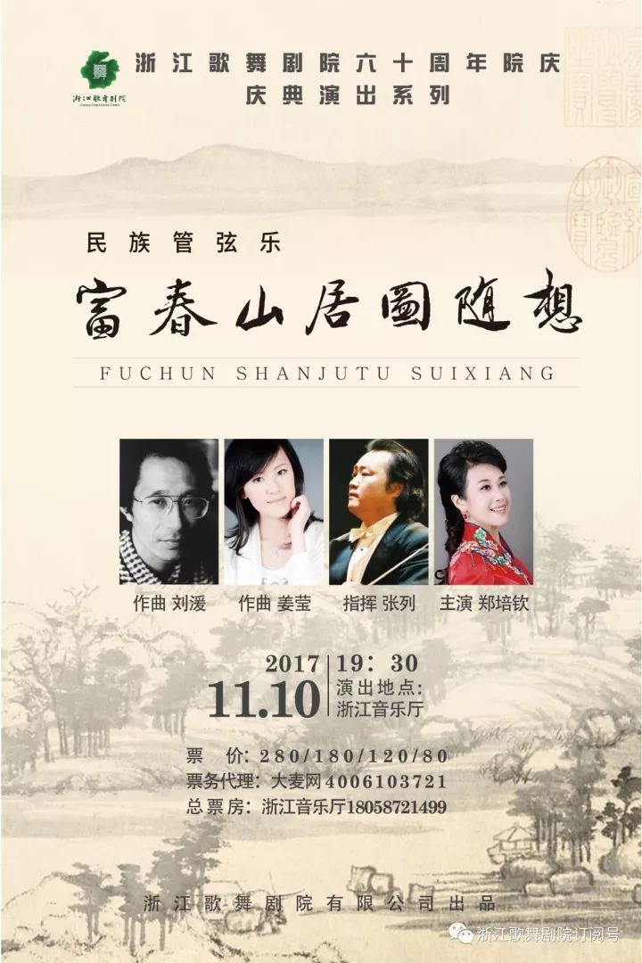 介此,一项旨在借助中国民族音乐的力量传递《富春山居图》“画中之音、画外之境”的创作冲动在浙江歌舞剧院怦然而发,并在我国著名作曲家刘湲和姜莹的联袂演绎下终于精彩出炉——《山水画境•富春山居随想》大型民族管弦乐组曲于2013年即黄公望《富春山居图》始画666周年之际隆重面世。