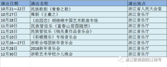 本次浙歌60周年庆典演出,将分为“庆典演出系列”、“祝贺演出系列”、“艺术家专场系列”、“青年艺术家专场系列”、“新松计划青年演员专场系列”和“院庆主题庆祝系列”六大系列。从2017年10月21日一直到2018年1月底的三个月时间里,36个项目共要演出41场大戏!