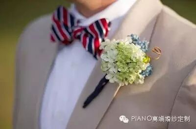 在婚礼现场,最受关注的是穿着时尚的新娘子,旁边的新郎官虽说不是焦点,但也确是实实在在的男主角哦!因此新郎也是焦点了,身上每一次也要做到完美,就连胸花也一样。