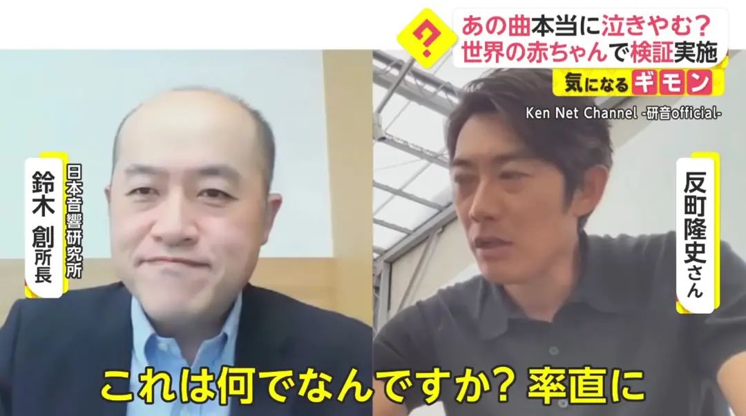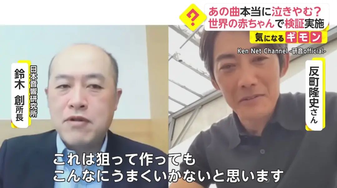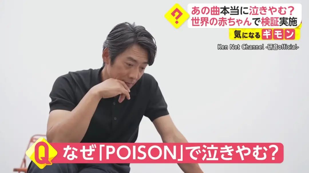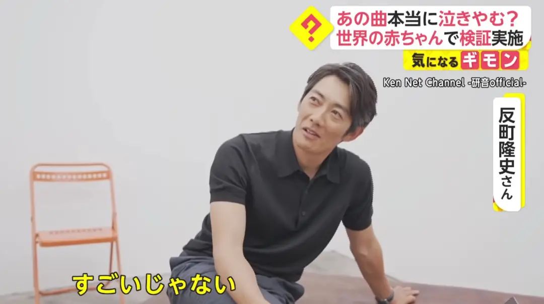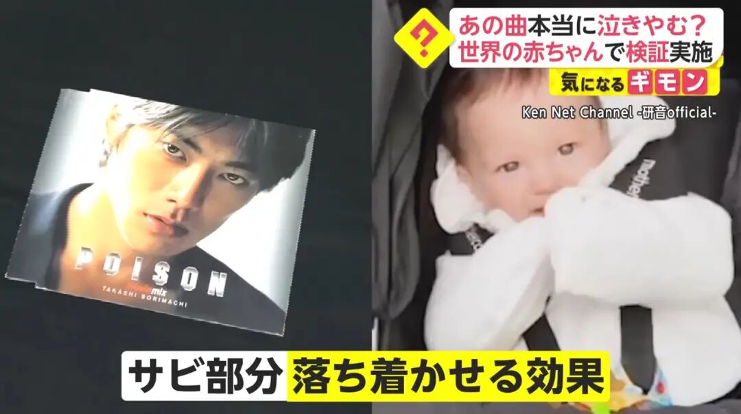 日本人有个传闻,是指如果在哭的婴儿听到反町隆史的名曲,就会停止哭泣。于是反町隆史所属事务所的YouTube频道“Ken Net Channel”就上载影片进行实测,找了5个不同国家的婴儿,在他们哭泣时播放名曲,再观察他们的反应。反町隆史表示连自己都不知道自己的歌会有神奇的效果,直到看见婴儿们止哭的反应,他才惊觉好厉害。同时,工作人员更联络了音响专家解释背后的原因,原来是因为歌曲中的一个特点引起婴儿好奇心,从而令他们停止哭泣。首先是日本代表,8个月大的小婴儿狂哭。听到歌后停下来了,以好奇的目光往周围看。最后竟然笑了。第二个婴儿是新西兰的Lily,她只有4个月大。一听到歌立刻定睛,好像在说︰“大人你在干什么?”。虽然她花的时间比较久,但的确是听了歌曲的一半左右就笑了。这个孩子来自美国,已经两岁大了,但仍然有时会哭个不停。虽然没有笑,但还是不哭了啊。这个来自巴西的孩子,1岁9个月大。哭到不似人型。歌曲一播,他瞬间就不哭了。渐渐破涕为笑。最后是来自英国的10个月大小婴儿。听了几秒,就开始好奇地看着不同方向,似乎在找声音来源。最后渐渐露出超可爱的笑容啦。反町隆史自己都表示很疑惑,怎么会这样呢?摄制队邀请了日本音响研究所的所长铃木创,分析到底这首歌有何特别之处。铃木指,因为《POISON》这首歌前奏部分的波动很大,对婴儿来说是一种刺激,亦会吸引他们的注意力。如果本来他们在哭的话。会被高低高低的节拍吸引,从而分散原来的不满。而副歌部分则有镇静精神的作用,所以婴儿会静下来乖乖听歌,甚至会笑。铃木甚至说,就算特地要作一首能安抚幼儿的歌,都不一定能做到这何效果,所以这首歌是很难得的。反町隆史自己则是感到很惊讶,没想到自己的一首歌都会有小儿止啼的神奇功效。如果有人夸我唱歌会让小儿止啼,总感觉不是很美好的夸赞……另外发现反町老得真快啊……对了,如果你家也有毛孩,试试看能不能止啼?倒是小编最近倒是经常听着莫扎特K.448钢琴曲码字,据说有提升智商之功效。大家若感兴趣的也试试吧,哈哈~