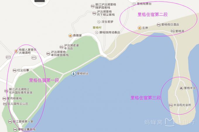 然后第三段是著名的里格半岛,客栈价格比里格湾的更贵点。这一段客栈的特点是临水而建,真正的“湖面上的小屋”,浪漫第一。旺季时,推窗下就是湖水的房一价难求。