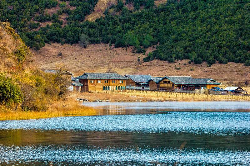 洛克岛,距湖岸落水村2500米,岛上树木葱笼,百鸟群集,候鸟等栖息之处,也是昔日土司的水上行宫,美国学者洛克也曾旅居于此。