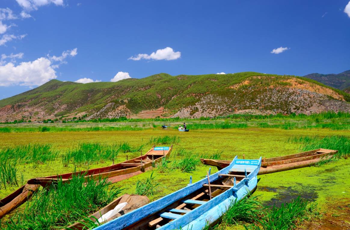 泸沽湖东南水域的草海区域,属于四川境内盐源县草海景区。无需再买票,全天开放。春夏季是翠绿色一片特别护眼养眼,金秋时变成金黄一片,很璀璨。