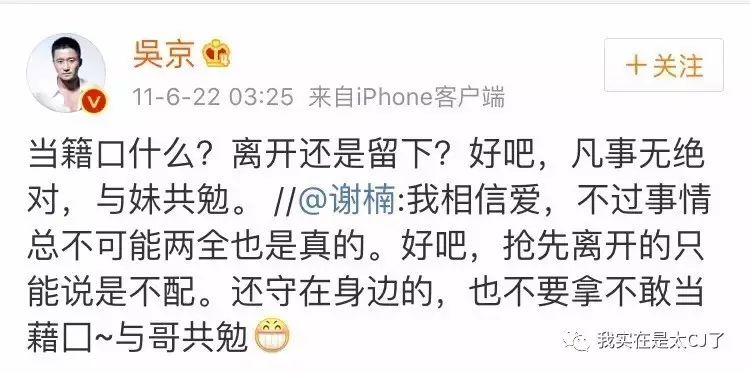 并用谢楠那句“吴先生最讨厌女人哭”来总结:吴京有点直男癌。