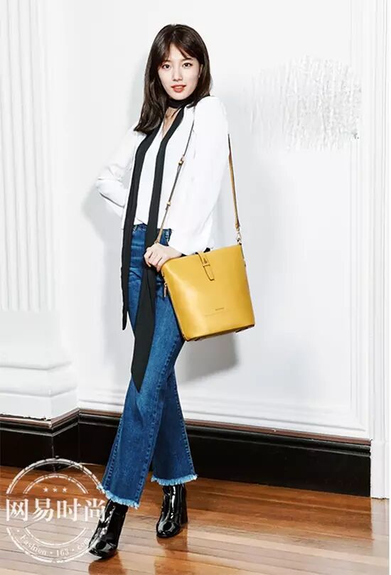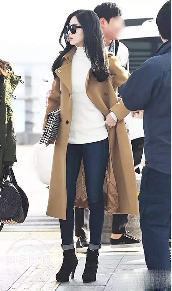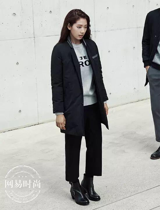 翻开韩国女星的街拍Look,就会发现她们人人都是黑色短靴控。黑色本身就是收缩色,让胖的地方显瘦,让瘦子更瘦,下半身顺色无疑是视觉显高显瘦的唯一方法。如果觉得自己腿短,可以尝试高腰裤。