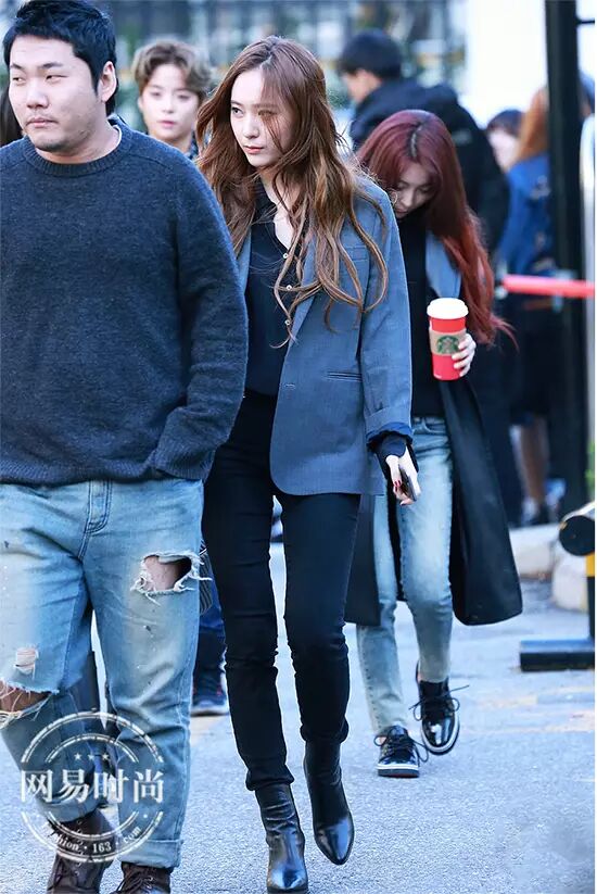 林允儿、郑秀晶和IU都比较喜欢中性的款式,用切尔西短靴和马丁靴搭配极简风格的外套。▼