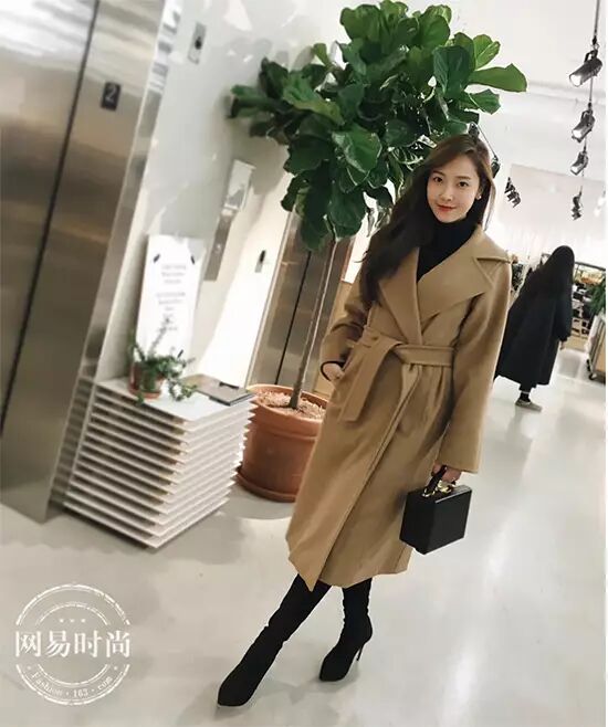 长款大衣与高跟短靴更配,尤其对于矮个子的妹子来说,视觉增高的硬办法只有高跟啦。▼