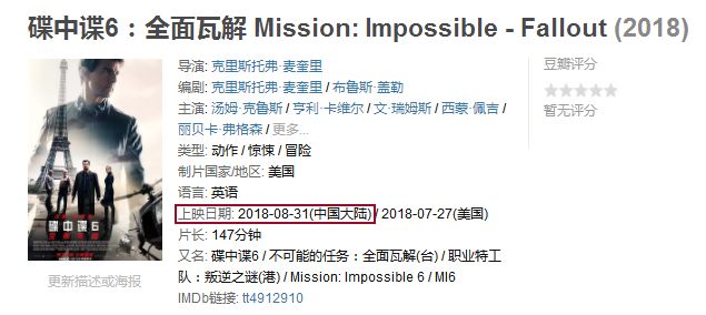 坐等8月上映,看阿汤哥继续挑战极限,大开眼界。
