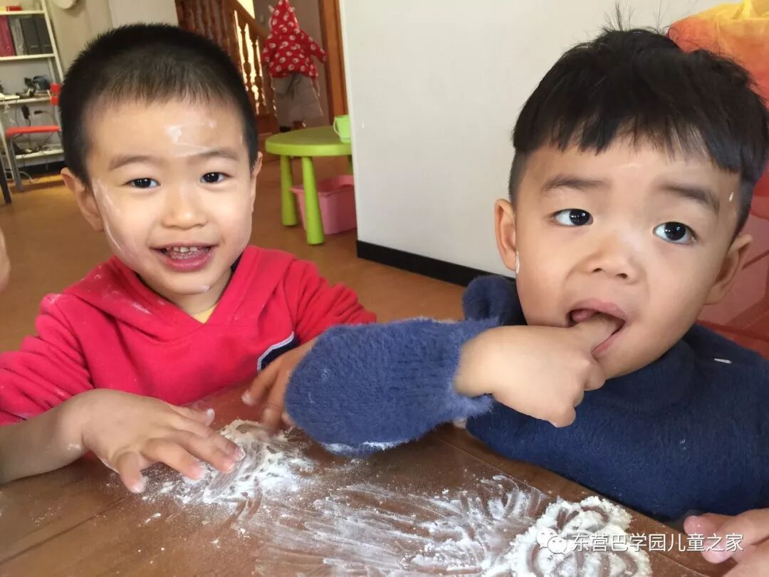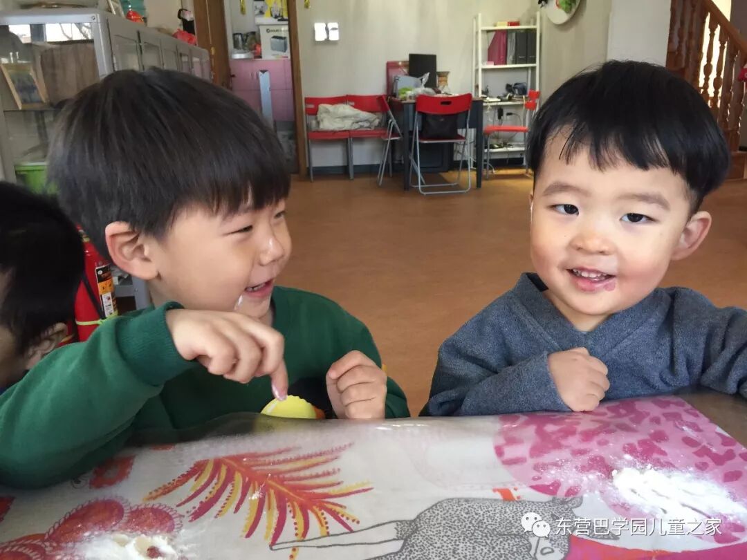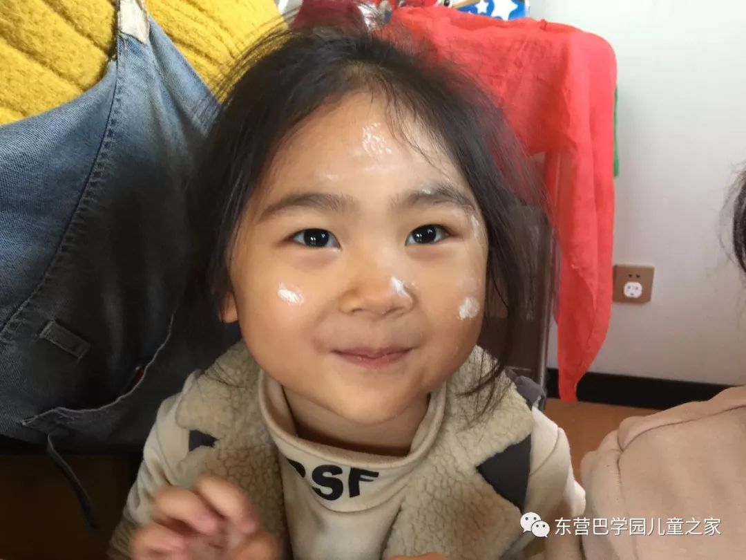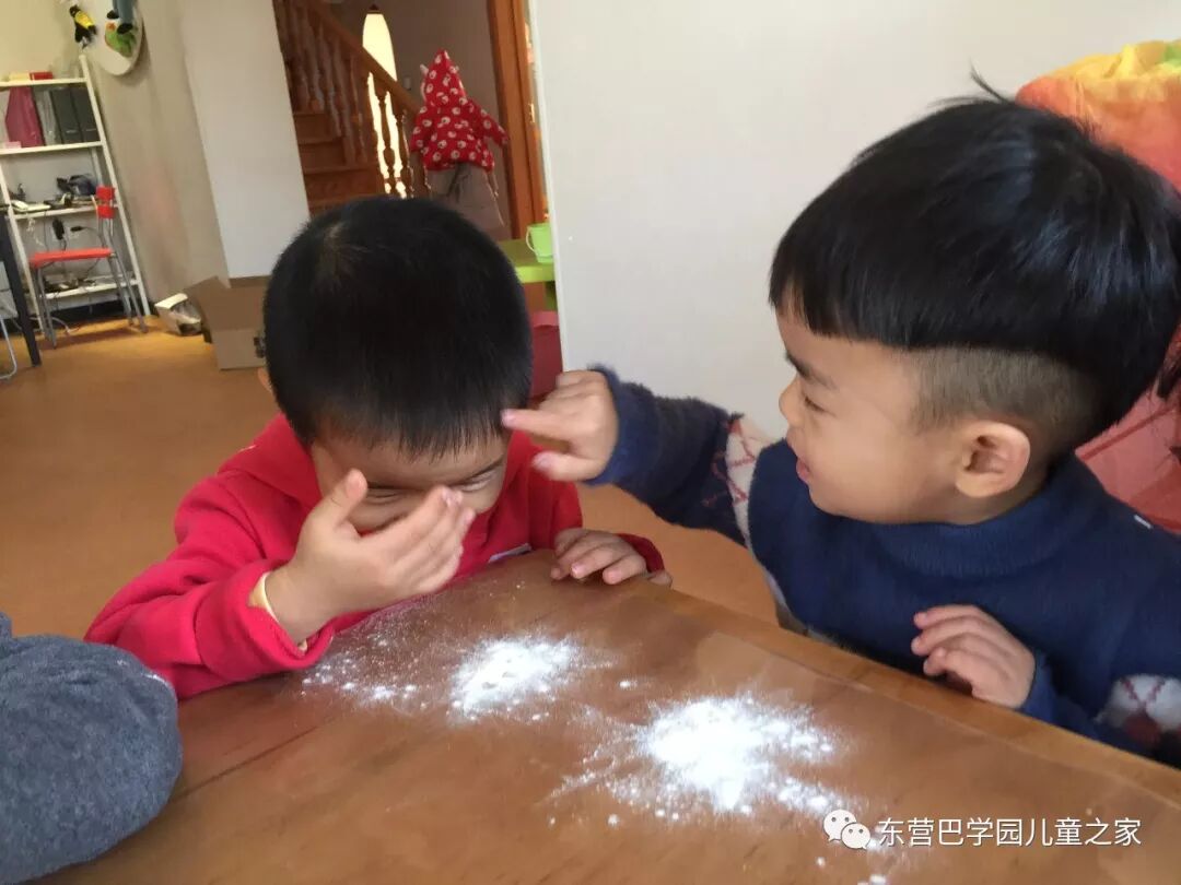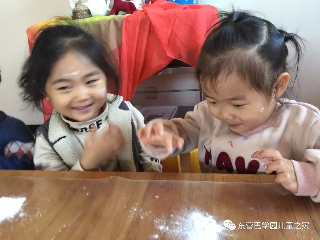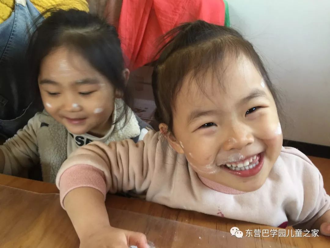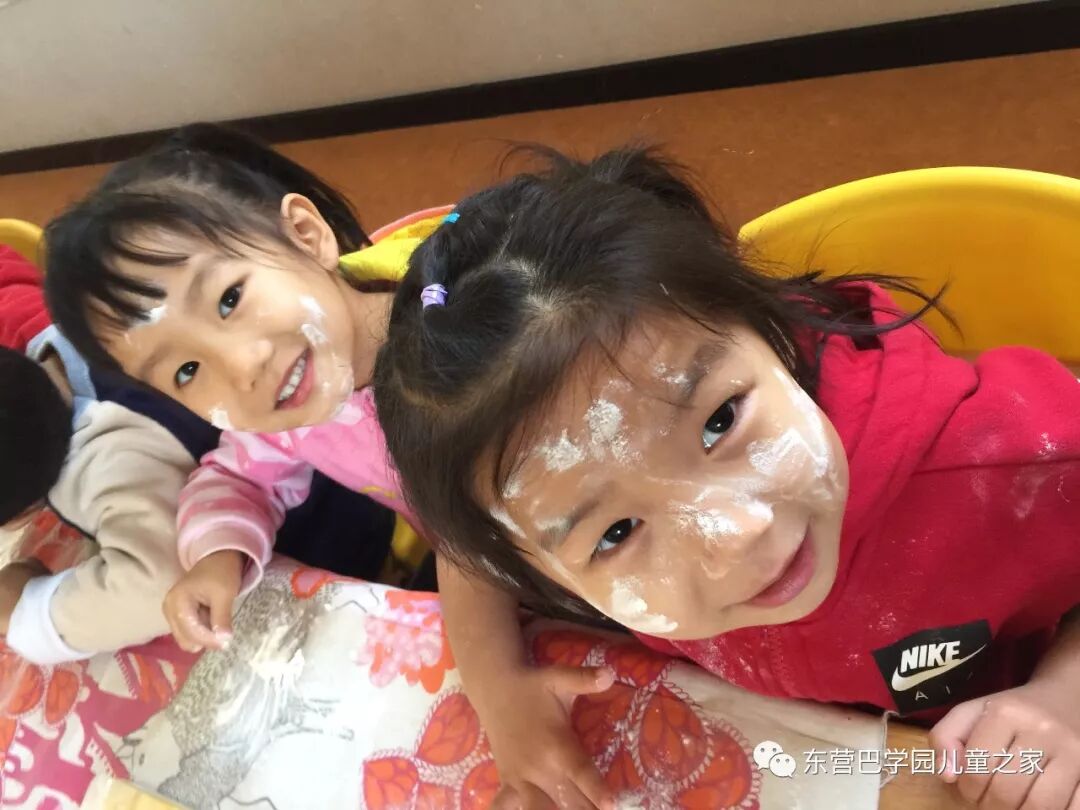 做花馍馍之前,玩面粉自然少不了!几个小朋友一起你抹抹我我抹抹你,一会就变成了一个个小花猫!不仅自己变成小花猫,看着同伴们也变成小花猫,笑的更是前仰后合.