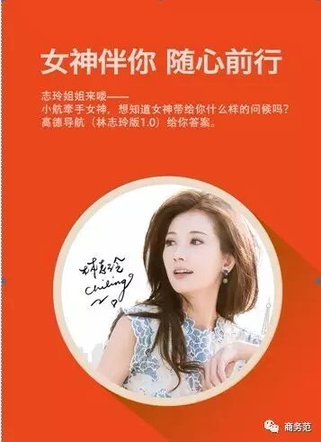 林志玲的声线非常特别(嗲),这也是一个有人爱有人恨的点吧,然而这娇柔的声音也成为她的标志,高德导航还可以下载林志玲声音,范主就遇到过很多司机在用~