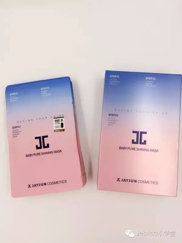 水光最新款樱花面膜,带有防伪标志,面膜分为三个部分,step1水光精华,step2新生焕白面膜,step3水光眼霜,三步打造水光婴儿肌肤。2016年jayjun公司打造的升级版水光面膜,成分上更温和效果更突出,坚持使用让你的肌肤像婴儿一样水润透白