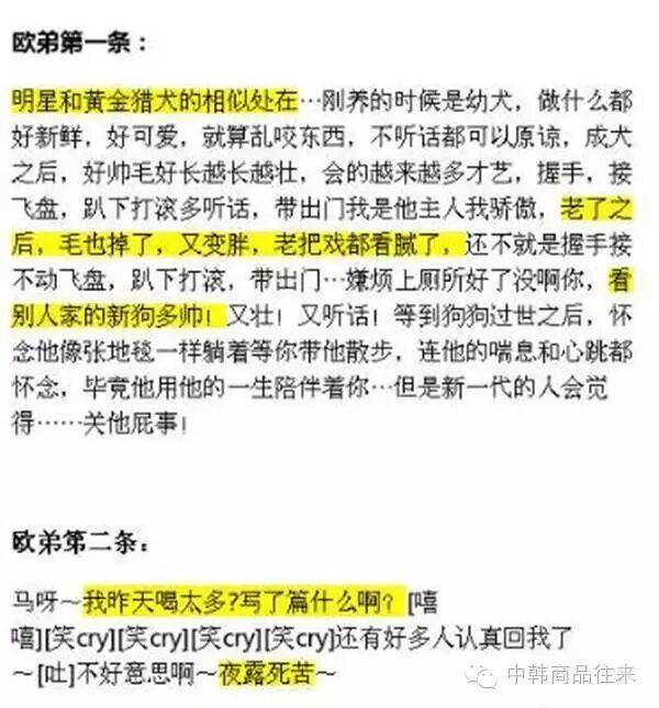 加上最近新的天天兄弟的阵容曝光,大张伟“取代”欧弟的言论每天都在轮番流出,欧弟也在微博自诩“老狗”才华殆尽,怎么摇尾巴主人都不喜欢了。