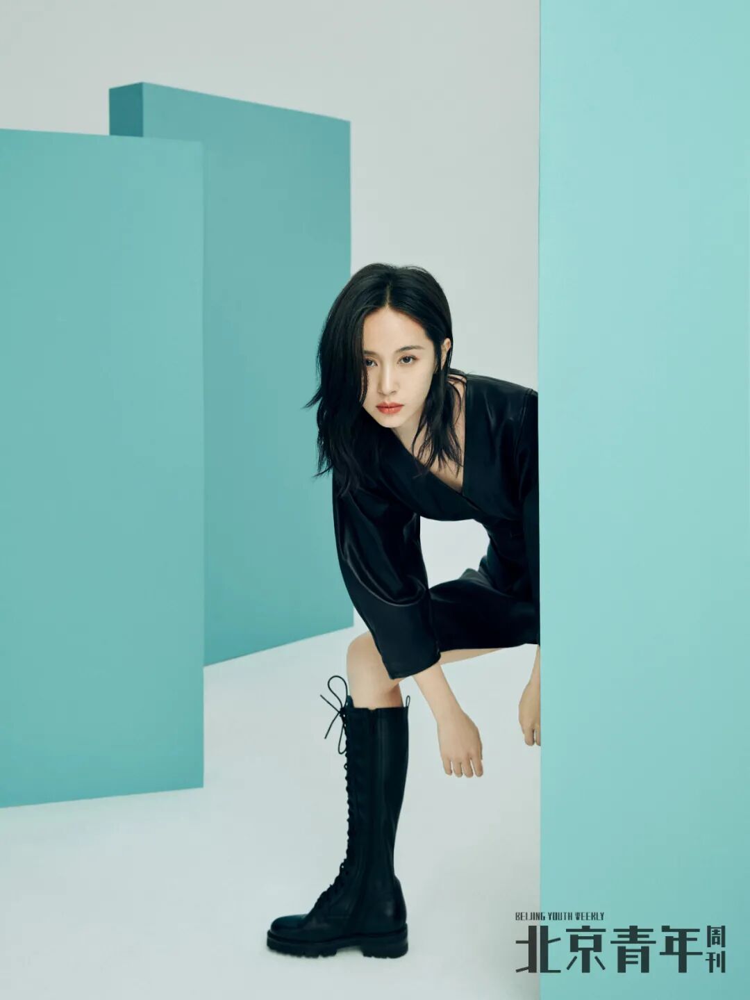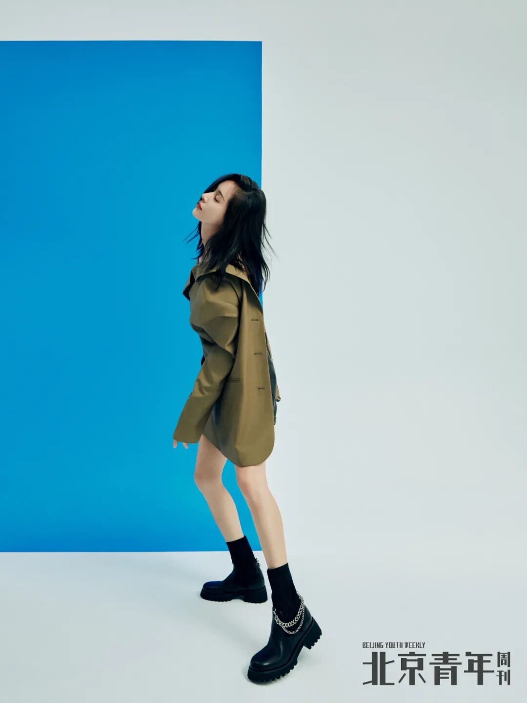 毛呢大衣、金属雕刻耳环、皮质高跟短靴均为 Versace
