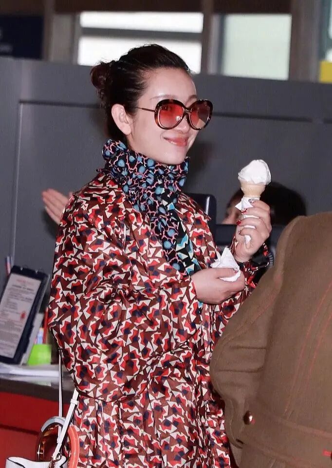 一件红色的衣服看起来特别的亮眼了,上面的图案是那种五颜六色的。侧脸看起来也是很漂亮的啊,而且她配了一个丝巾就会显得特别的高级,整个人还是显得比较的有气场。