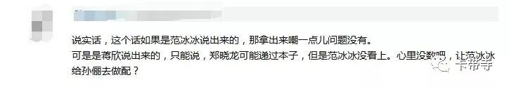 看到这时,不少网友留言吐槽:范冰冰怎么可能愿意给孙俪做配?如果她演肯定要加戏。