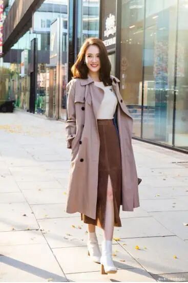 陈乔恩的私服也都很有品味。随性的过膝风衣,大的敞怀穿着,里面的搭配是包臀高叉的棕色长裙,上身紧身白色衬衫,简单朴素的配色,既可以在走路间不经意的看到雪白笔直的美腿,又能看到上身身材的曲线。完美的搭配勾勒出阳光,开朗的一个大女孩的形象。白色的素色高跟鞋,更是百搭,为这一身简单大气的搭配又加分不少。