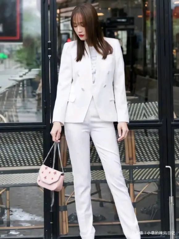 一身白色宽松西装风,里面是有暗纹的白色简单打底衬衫,配上俏皮的运动鞋,迎面而来就是一种很飒爽的感觉,简约大气,完全没有装嫩,完全不用装嫩,陈乔恩用实力来告诉我们时间真的是错过了她,遗忘了她。这样的穿搭风格简约中透露出时尚,很适合上班族来借鉴学习,穿上后霸气侧漏!
