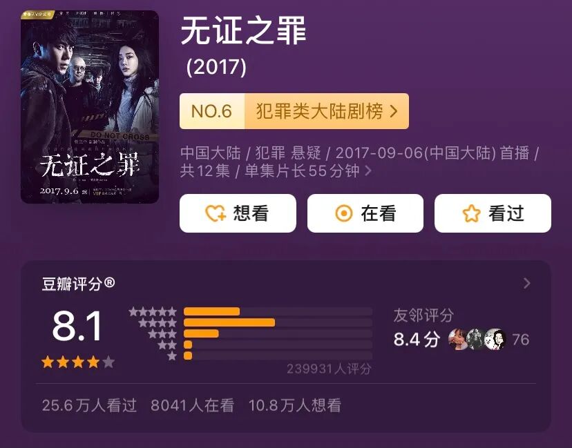 《沉默的真相》有70多万人标记看过,豆瓣评分高达9.1分