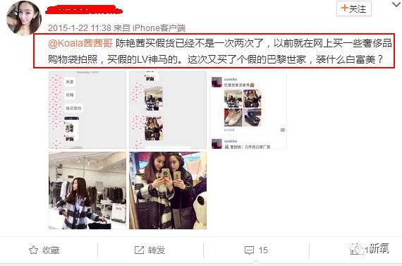 然而没多久,就被网友发现她微博上晒的包包,竟然是假货。