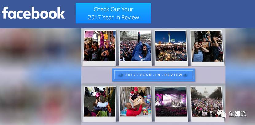同样,Facebook也帮助用户找到属于自己的2017记忆。“Your 2017 In Review”使用了用户在过去一年中标记和分享的热门瞬间,自动生成个性化视频,用户也可以自己编辑并分享。