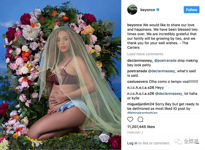 而个人的post也分出伯仲,收获最多点赞的是碧昂斯宣布怀孕喜讯的ins,有1千多万的点赞量,梅西为内马尔发的一条ins紧随其后,也有极高的关注量。