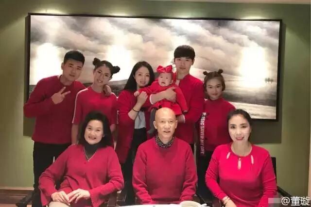 更喜庆的是董璇一家,全家人都穿上了红色衣服。