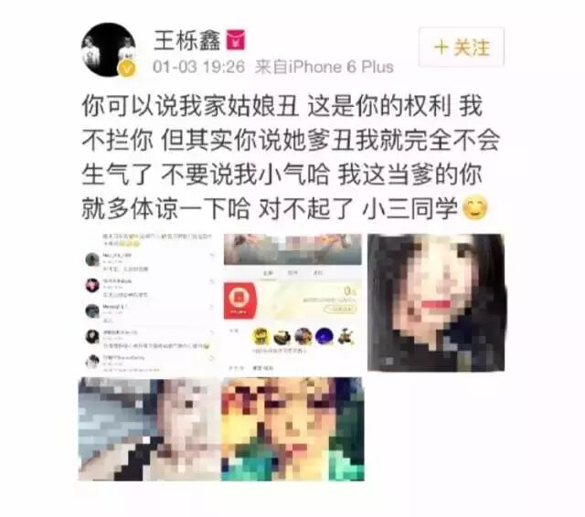 甚至还曾经因为有网友说女儿丑而和网友撕逼,爆出该网友照片、微博,并且还揭出其小三背景。