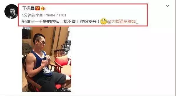 而这件事情发生以后,老婆是无条件相信他的。而王栎鑫也幽默回应:好想穿一千块的内裤…我不管!你给我买!