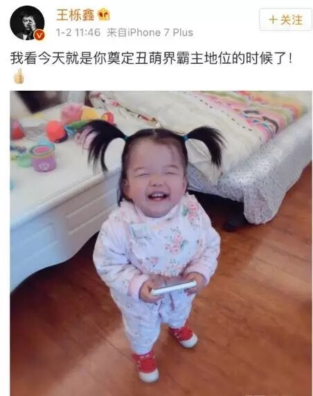 王栎鑫热衷于发女儿的黑图,还称女儿是丑萌界的霸主,现在网友们已经亲切的称呼王唯伊为王大姐了……
