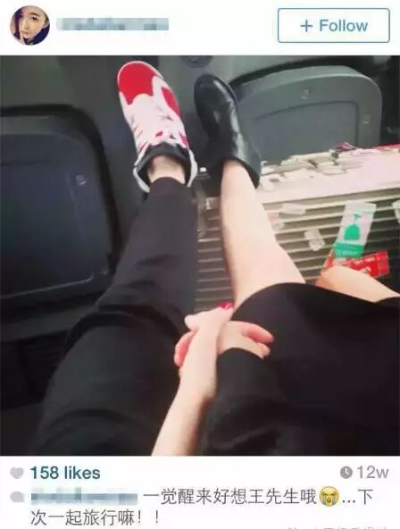 吴雅婷还会在ins中上传自己跟王栎鑫的牵手照,并配文"一觉醒来好想王先生哦...下次一起旅行嘛!"。