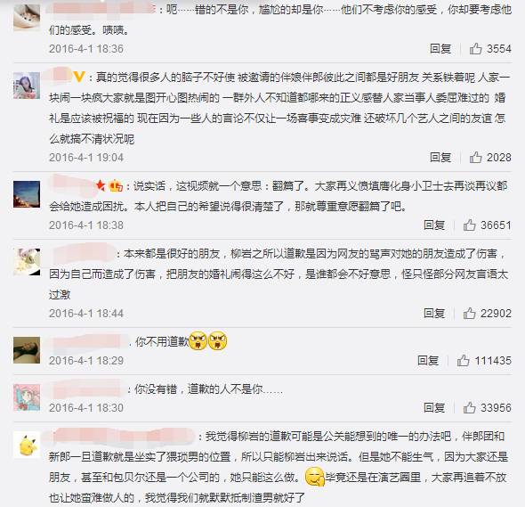 并跑到杜海涛、韩庚、王祖蓝等人微博留言表示对他们的这种行为很是反感。还发起了#包贝尔婚礼伴郎团给柳岩道歉#的微博话题。