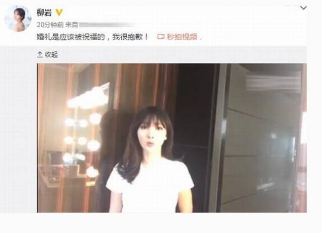 然而令人大跌眼镜的是事情发生两天之后,柳岩竟然站出来道歉了。在微博上说:婚礼应该是被祝福的,我很抱歉。还录了一段长长的视频。