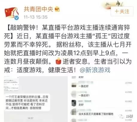 就连老人家也好言劝年轻人:不要老熬夜!去年年底,下面这条微博,令人震惊!某知名主播孤王,因过度熬夜和劳累而不幸猝死……据粉丝称,孤王年仅 20 岁,此前是公认的《王者荣耀》最强辅助,令人惋惜!