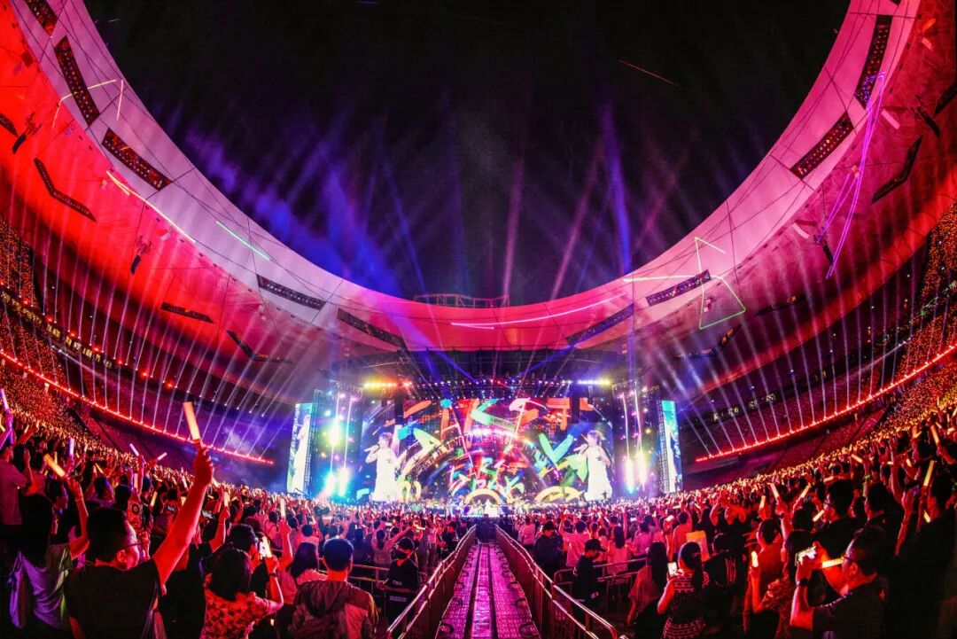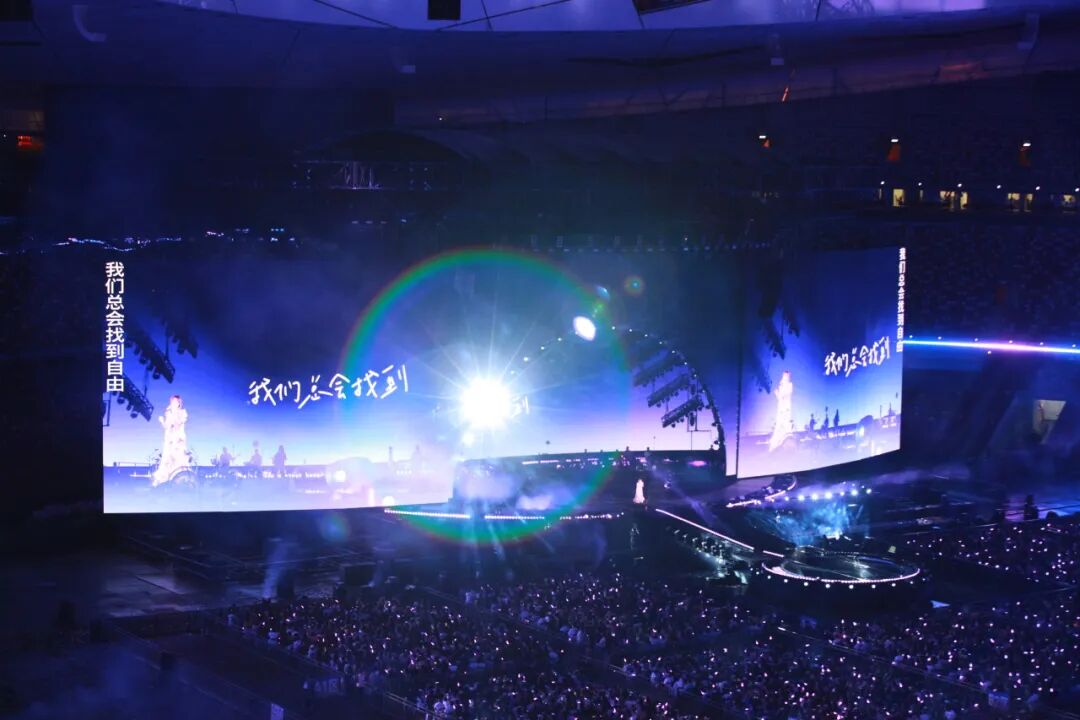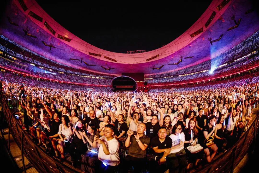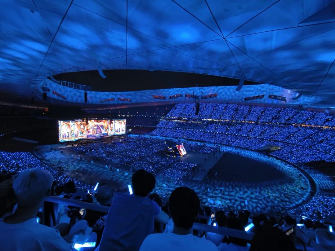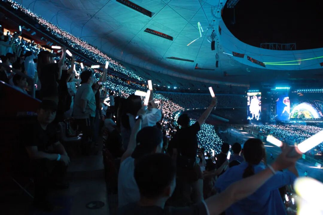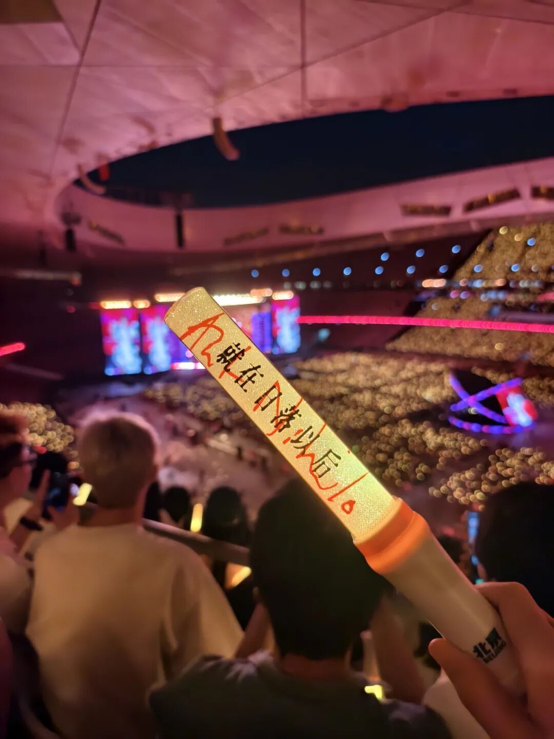 全场歌迷们一同大声合唱,歌声回荡在鸟巢的每一个角落。那一刻,时间仿佛凝固,都汇聚在这温柔的氛围中。