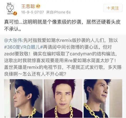 虽说大张伟早前就在节目上调侃自己是“音乐裁缝”,但这不问自取的态度,真的很难让人苟同。