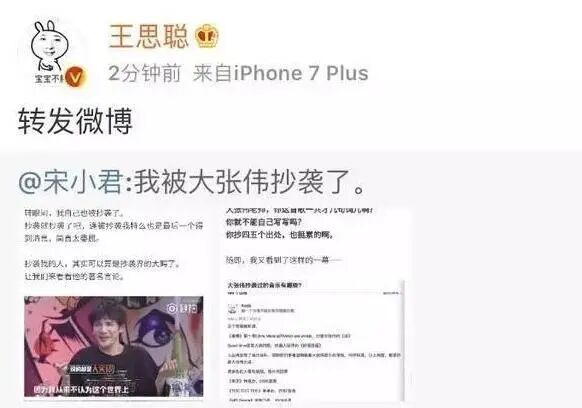 宋小君是吧?名气比不过大张伟,被抄袭了还要受气是吧?