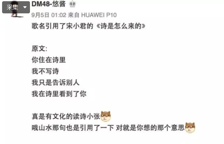刚开始的时候,大张伟的粉丝还出来洗白说,是“引用”了宋小君的诗。